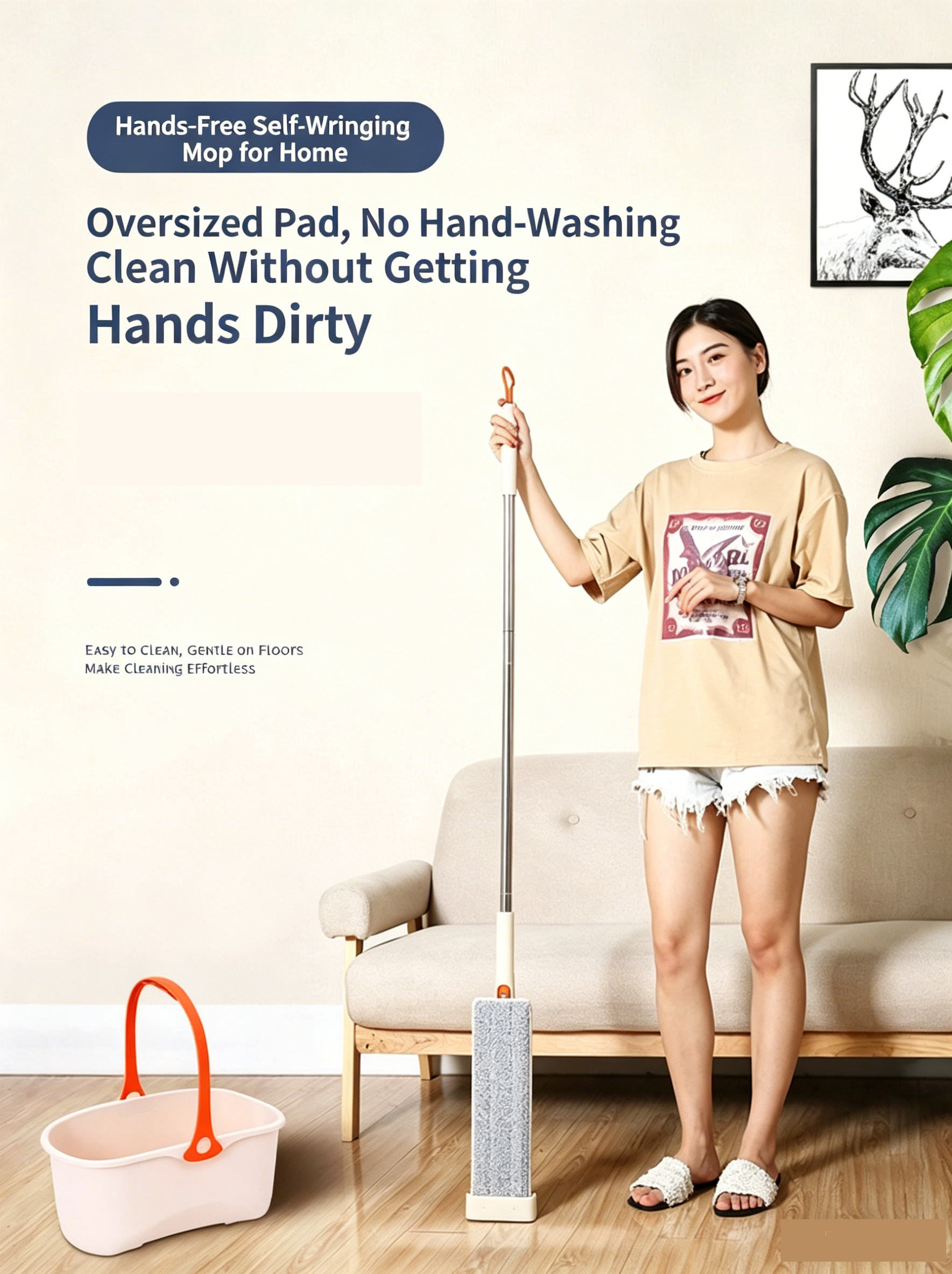 This household hands-free mop is designed to make your daily cleaning effortless and efficient. Featuring an extra-large cleaning panel, it provides a wider cleaning area and better dirt removal with fewer strokes. The hands-free self-wringing system keeps your hands away from dirty water at all times, allowing you to clean without getting your hands dirty.